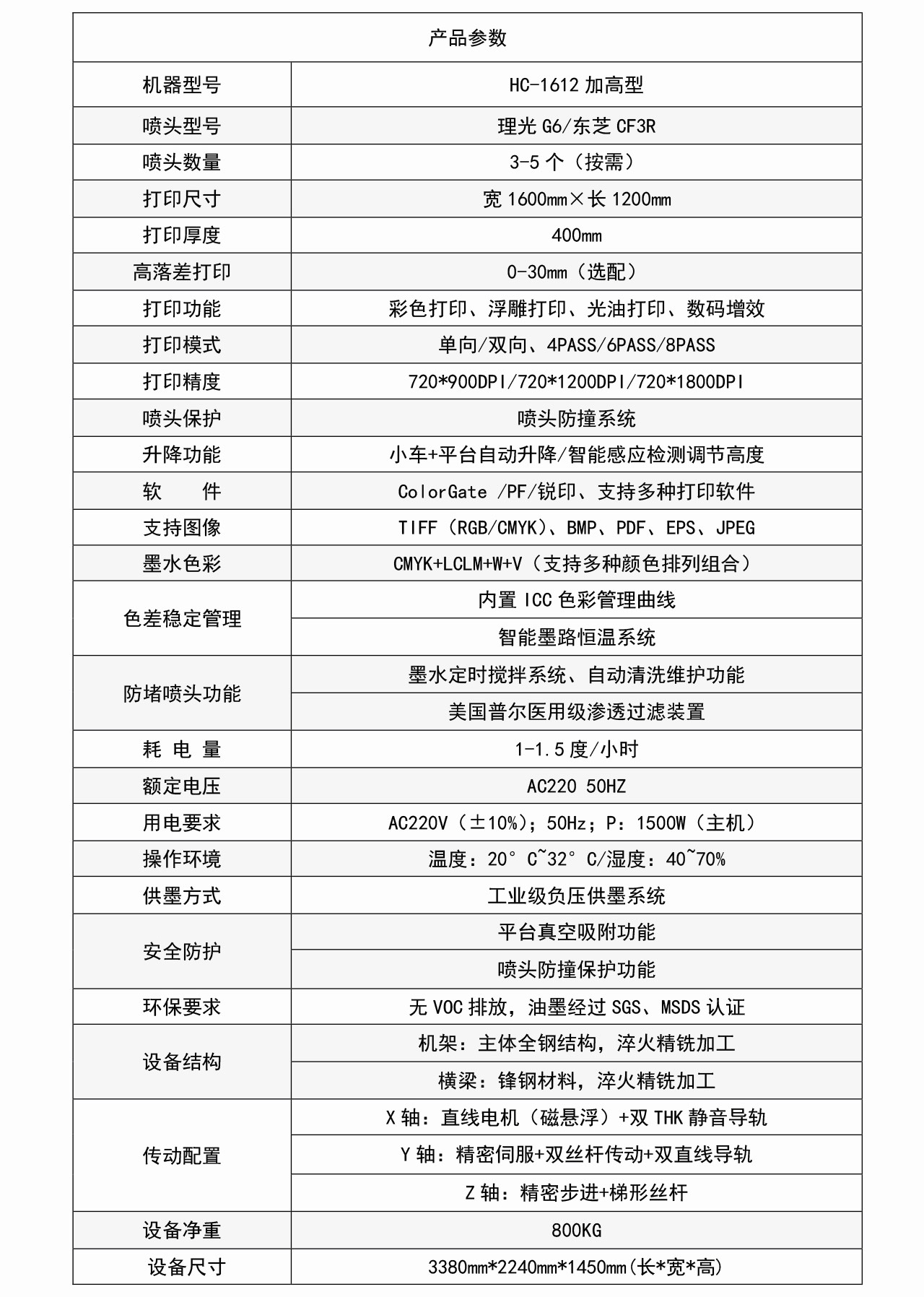 設備型號:HC-1612高落差UV打印機